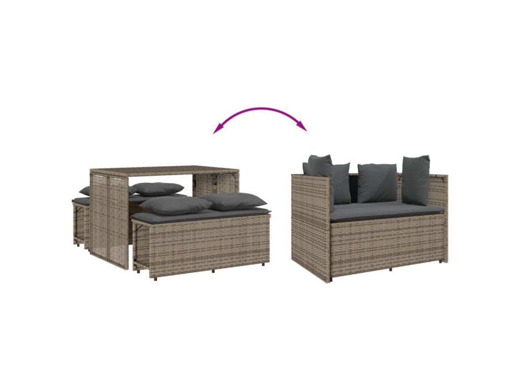 - Pohodlné sedadlo: Tento vonkajší nábytok, doplnený o hrubo čalúnené vankúše, ponúka pohodlné sedenie.