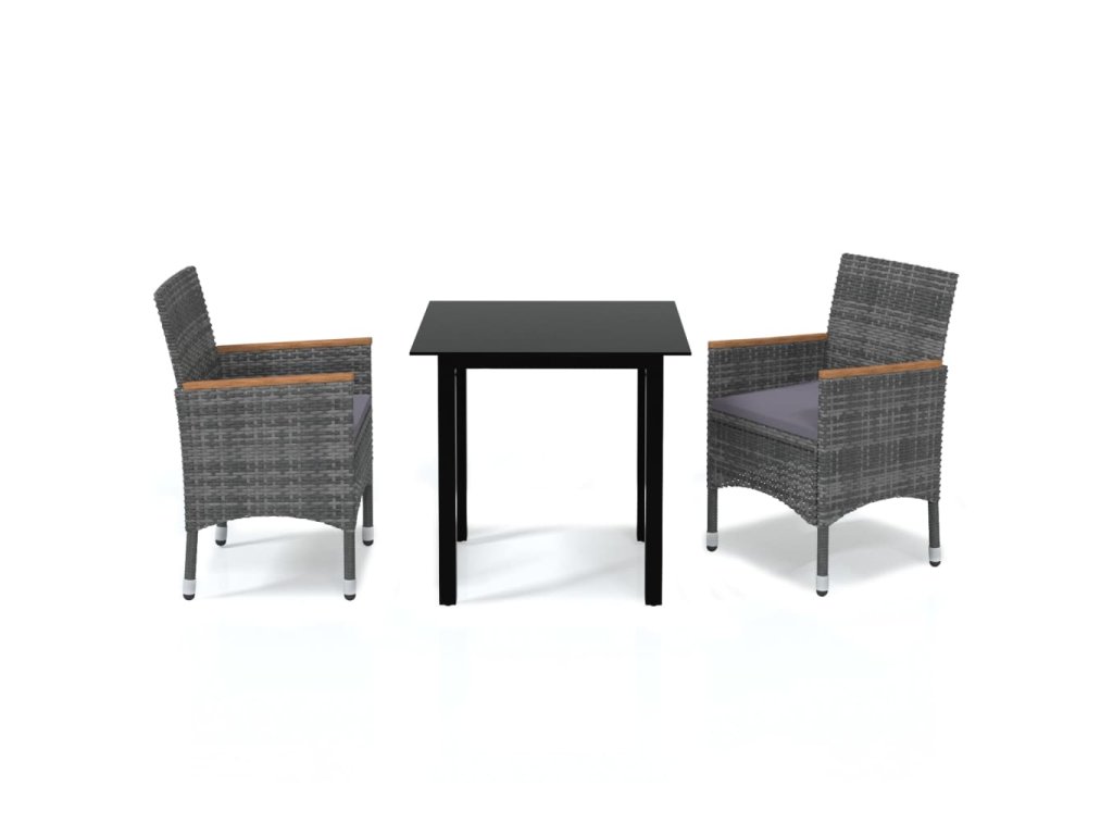 vidaXL 3-dielna záhradná jedálenská sada s podložkami sivá polyratan