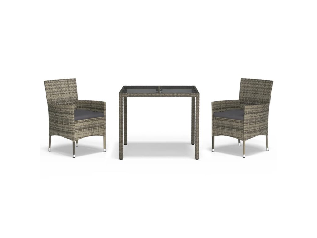 vidaXL 3-dielna záhradná jedálenská sada s podložkami sivá polyratan