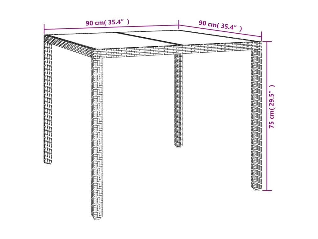 - Materiál: Polyratan, oceľ potiahnutá práškom, tvrdené sklo