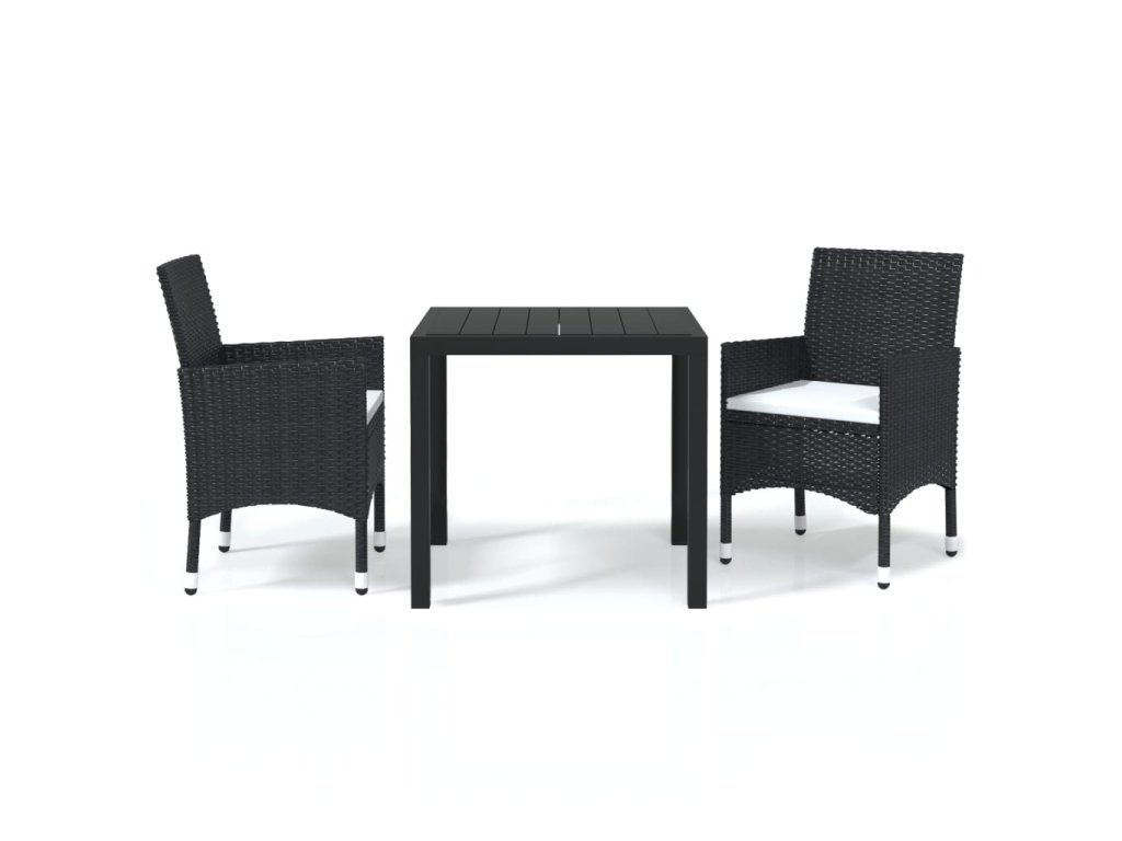 vidaXL 3-dielna záhradná jedálenská sada s vankúšmi čierna polyratan