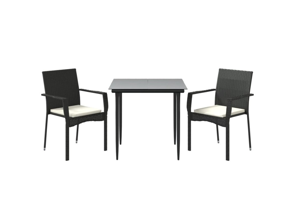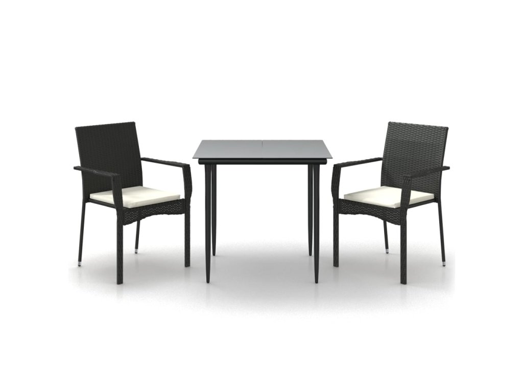 vidaXL 3-dielna záhradná jedálenská sada s vankúšmi čierna polyratan