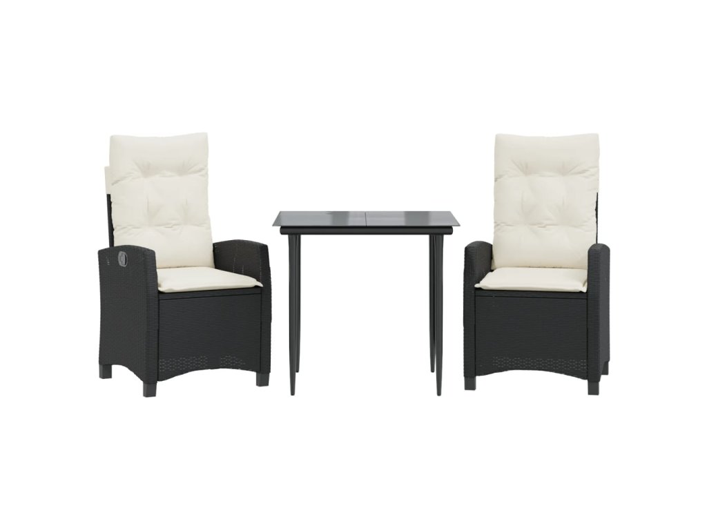 vidaXL 3-dielna záhradná jedálenská sada s vankúšmi čierna polyratan