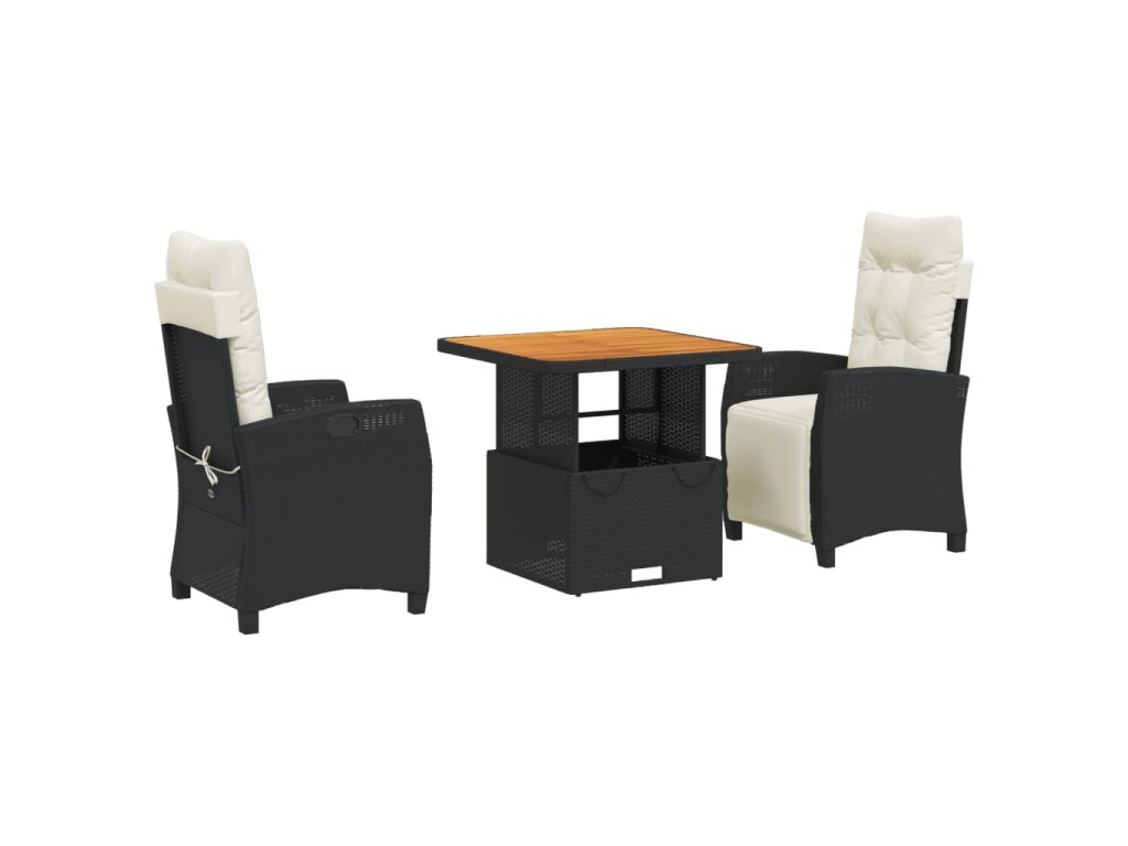 vidaXL 3-dielna záhradná jedálenská sada s vankúšmi čierna polyratan