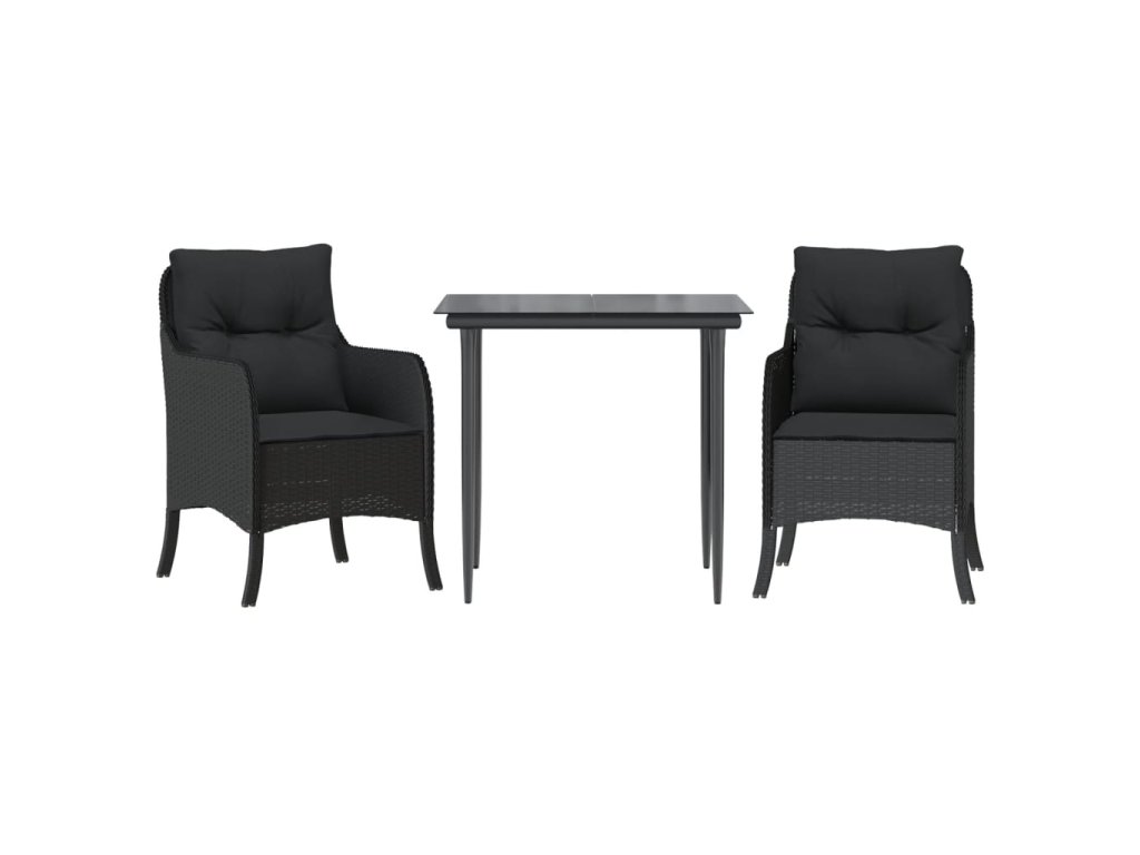 vidaXL 3-dielna záhradná jedálenská sada s vankúšmi čierna polyratan