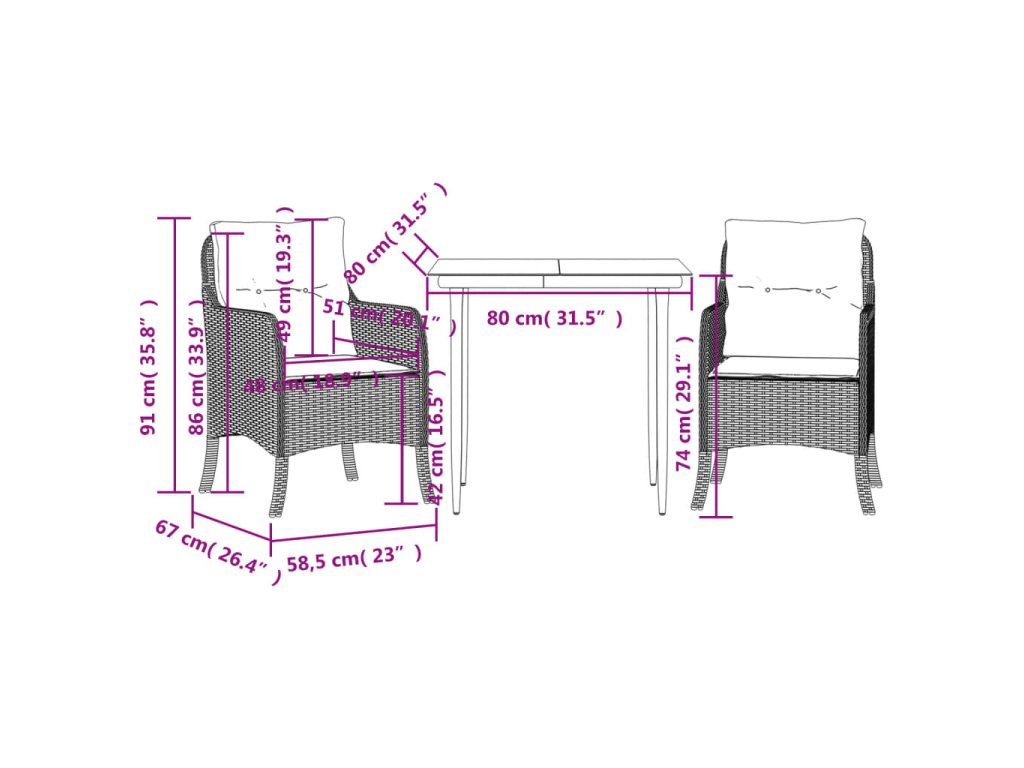 - Rozmery stola: 80 x 80 x 74 cm (D x Š x V)