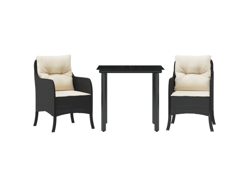 vidaXL 3-dielna záhradná jedálenská sada s vankúšmi čierna polyratan
