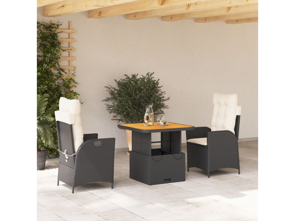 vidaXL 3-dielna záhradná jedálenská sada s vankúšmi čierna polyratan