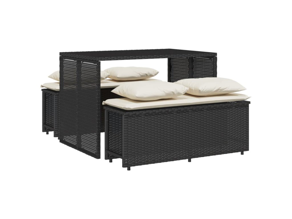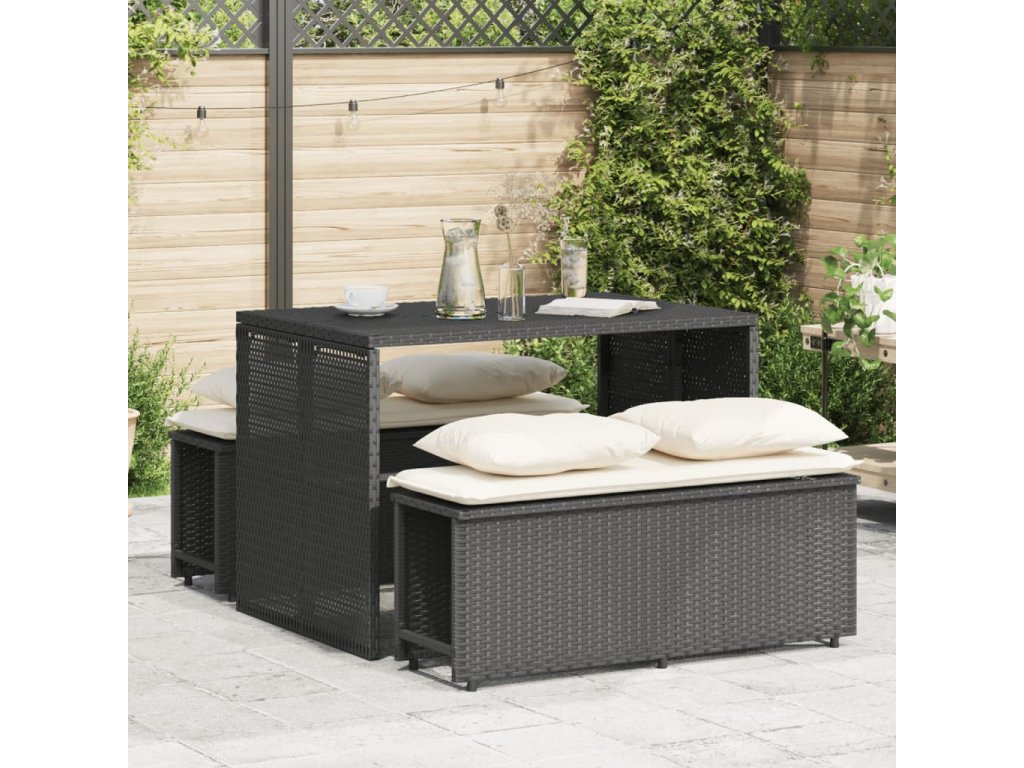 vidaXL 3-dielna záhradná jedálenská sada s vankúšmi čierna polyratan