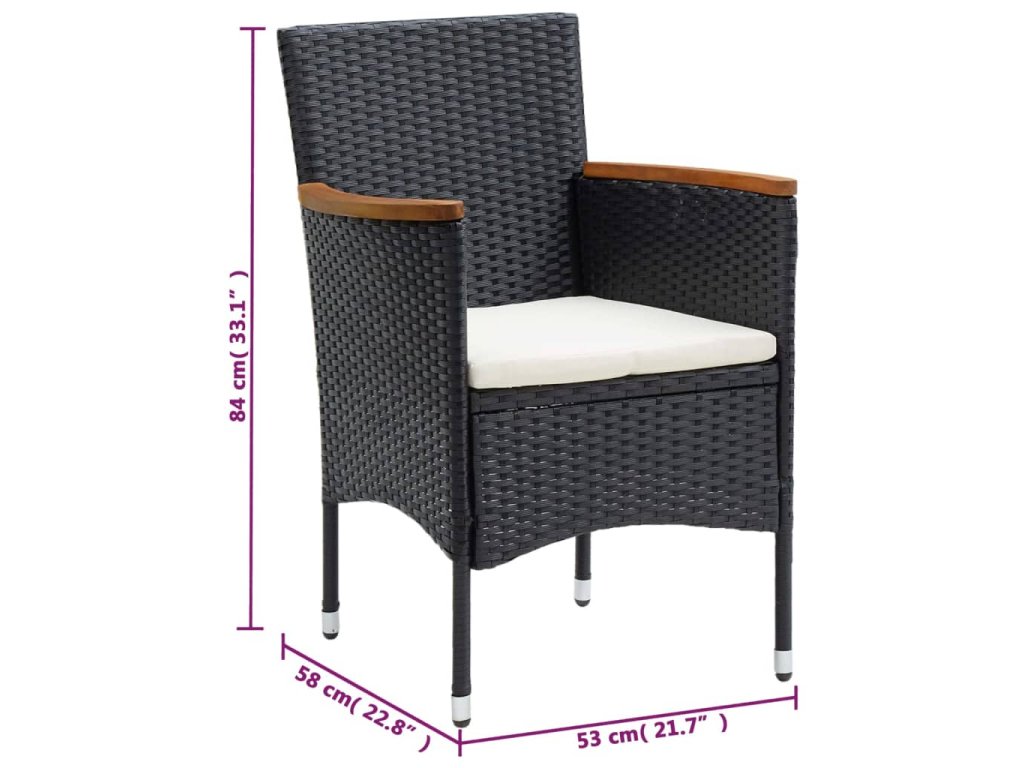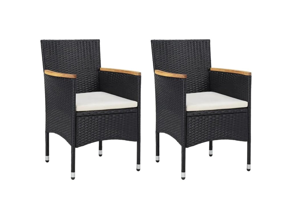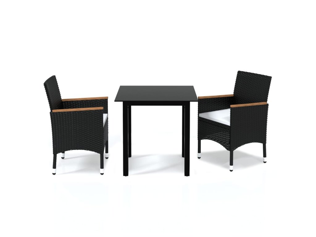 vidaXL 3-dielna záhradná jedálenská sada s vankúšmi čierna polyratan