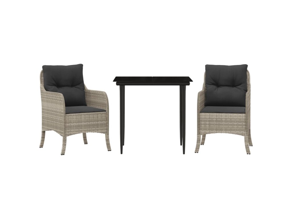 vidaXL 3-dielna záhradná jedálenská sada vankúše bledosivá polyratan