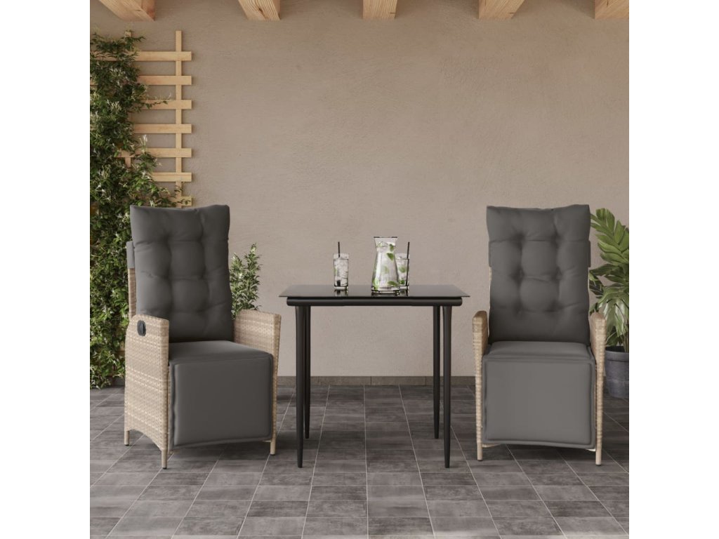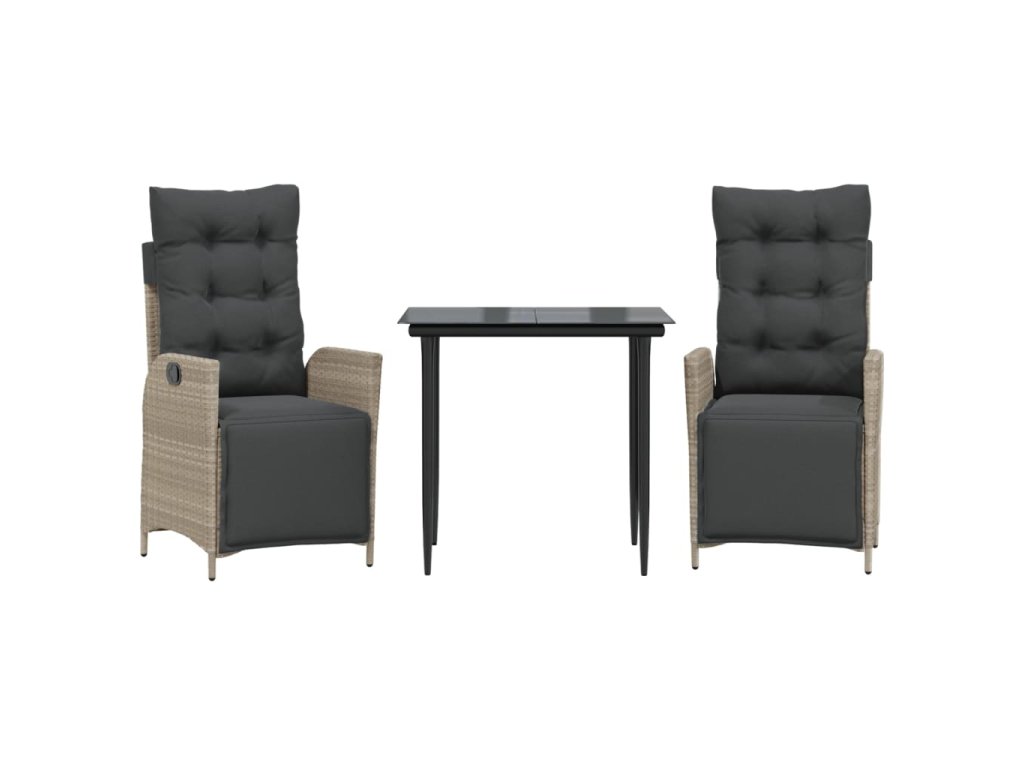vidaXL 3-dielna záhradná jedálenská sada vankúše bledosivá polyratan