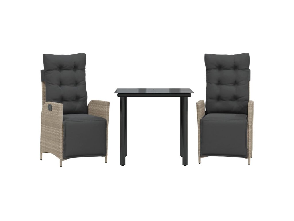 vidaXL 3-dielna záhradná jedálenská sada vankúše bledosivá polyratan