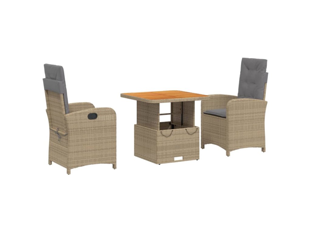 vidaXL 3-dielna záhradná jedálenská súprava a vankúše béžová polyratan