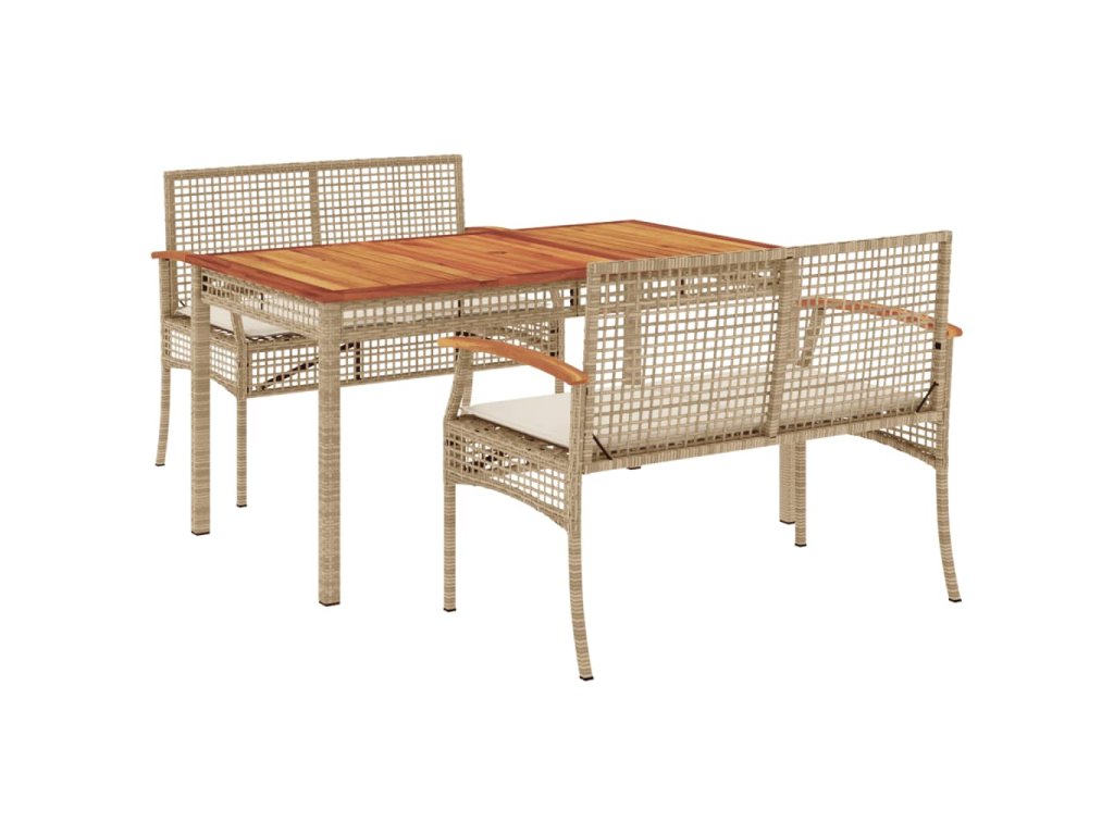 vidaXL 3-dielna záhradná jedálenská súprava a vankúše béžová polyratan