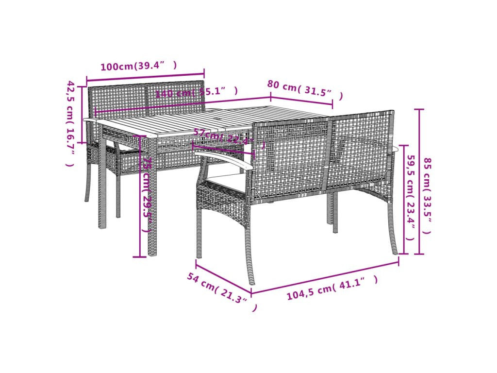 Táto záhradná jedálenská súprava je skvelou voľbou na stolovanie pod holým nebom alebo len tak na oddych v záhrade, na dvore alebo na terase.