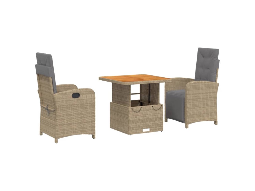 vidaXL 3-dielna záhradná jedálenská súprava a vankúše béžová polyratan
