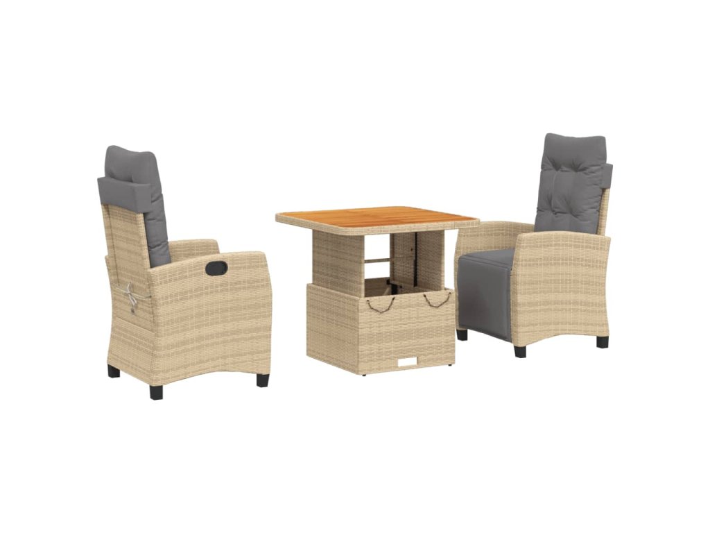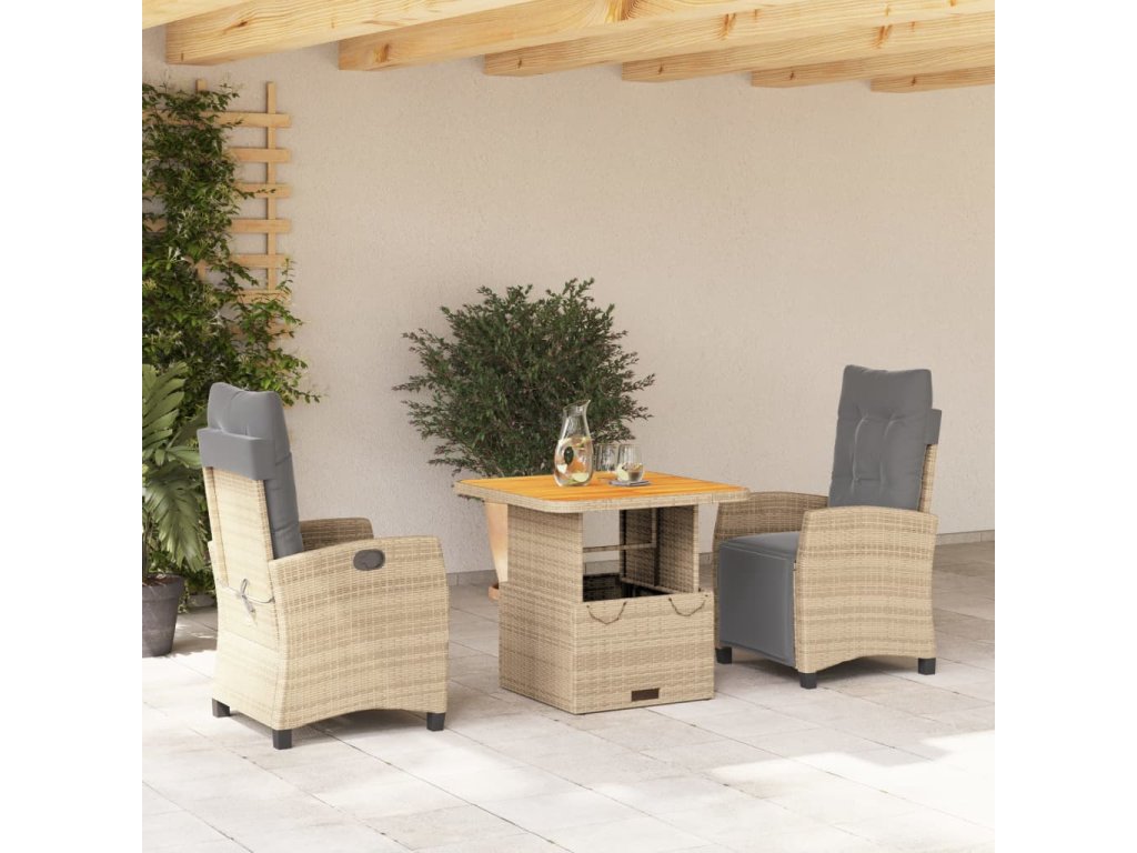 vidaXL 3-dielna záhradná jedálenská súprava a vankúše béžová polyratan