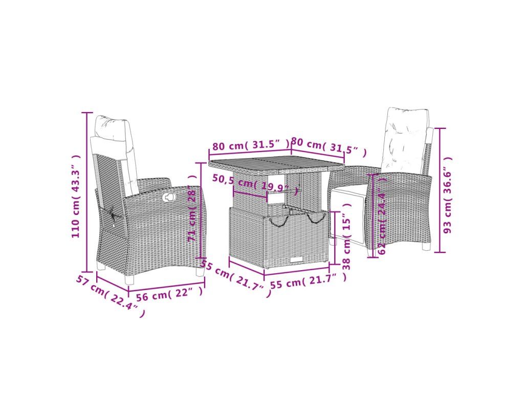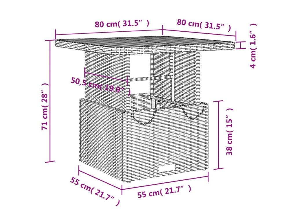 - Rozmery stola: 80 x 80 x 40/71 cm (D x Š x V)