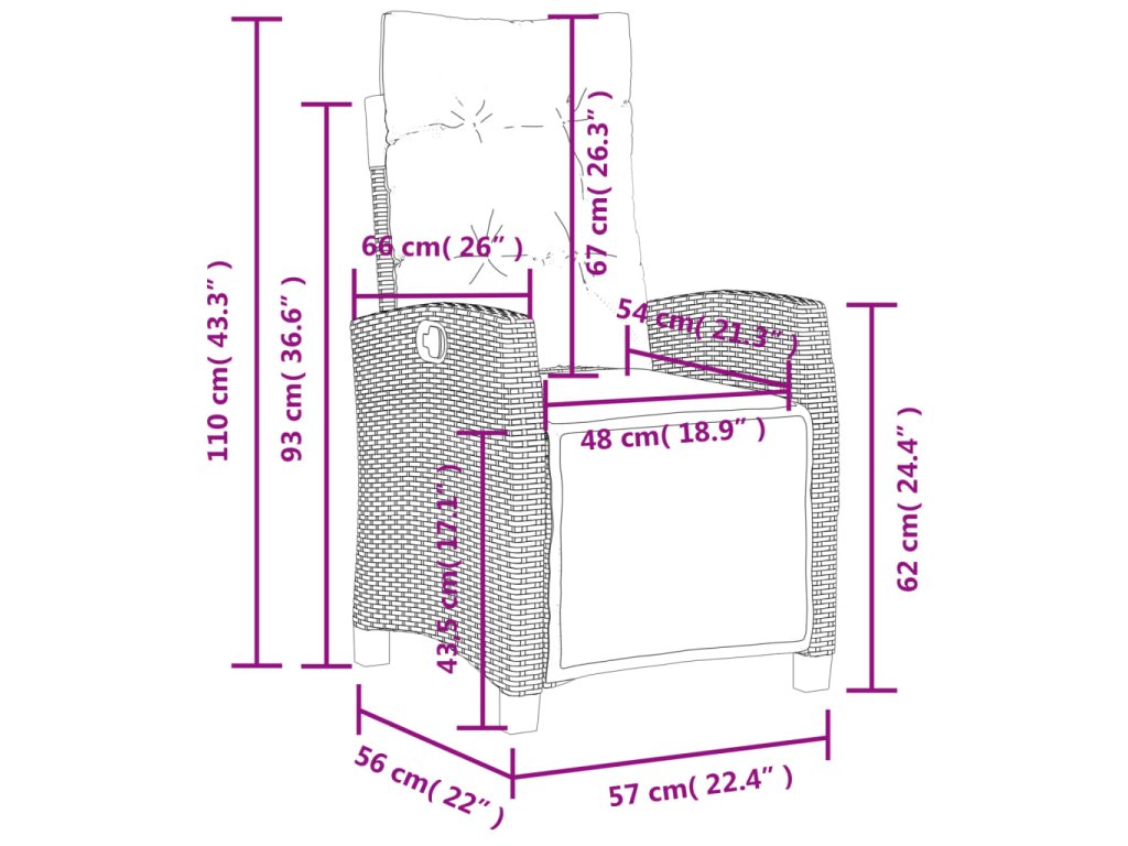 - Rozmery v polohe na sedenie: 57 x 66 x 93 cm (Š x H x V)