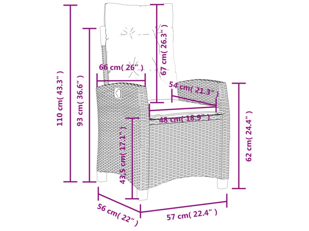 - Rozmery v polohe na sedenie: 57 x 66 x 93 cm (Š x H x V)