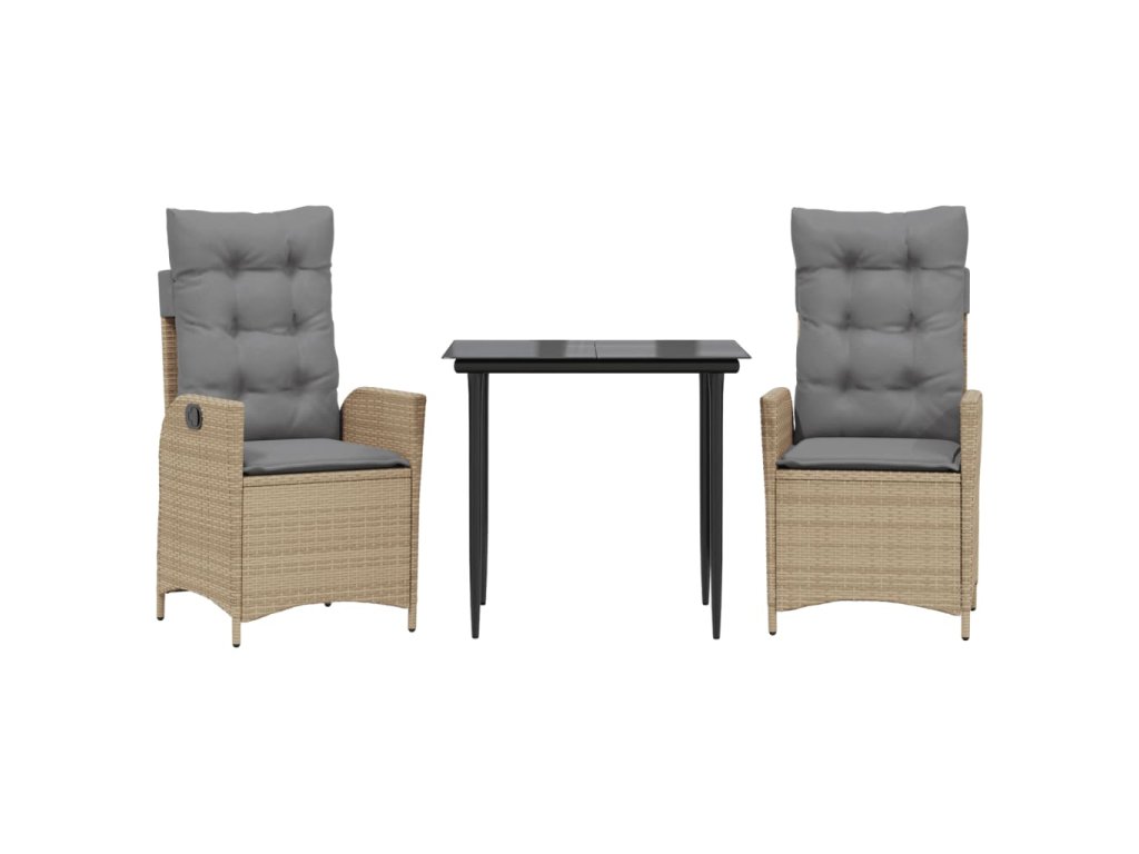 vidaXL 3-dielna záhradná jedálenská súprava a vankúše béžová polyratan