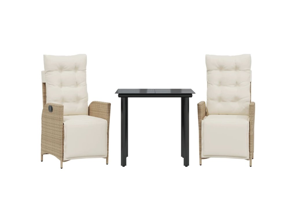 vidaXL 3-dielna záhradná jedálenská súprava a vankúše béžová polyratan