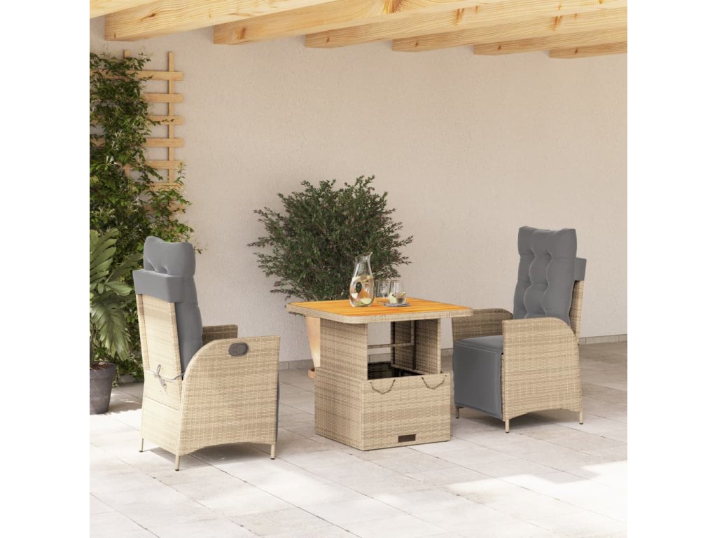 vidaXL 3-dielna záhradná jedálenská súprava a vankúše béžová polyratan