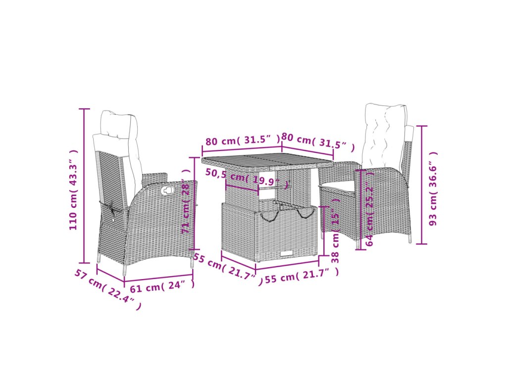- Materiál: PE ratan, práškovaná oceľ, masívne akáciové drevo s olejovým náterom