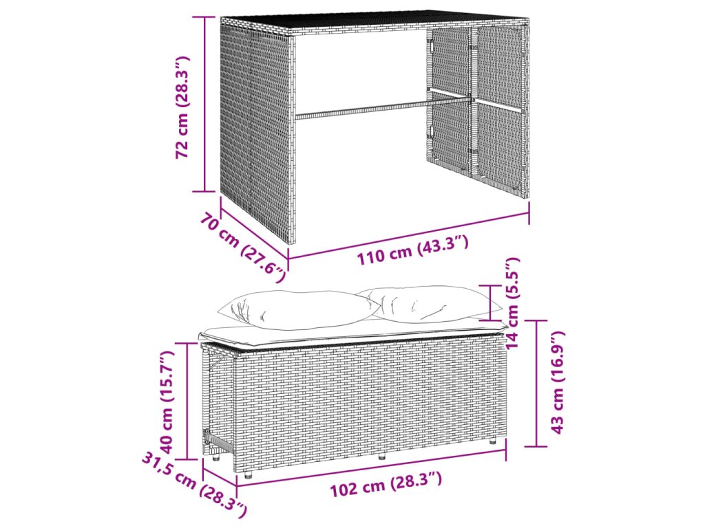 - Rozmery: 110 x 70 x 72 cm (D x Š x V)