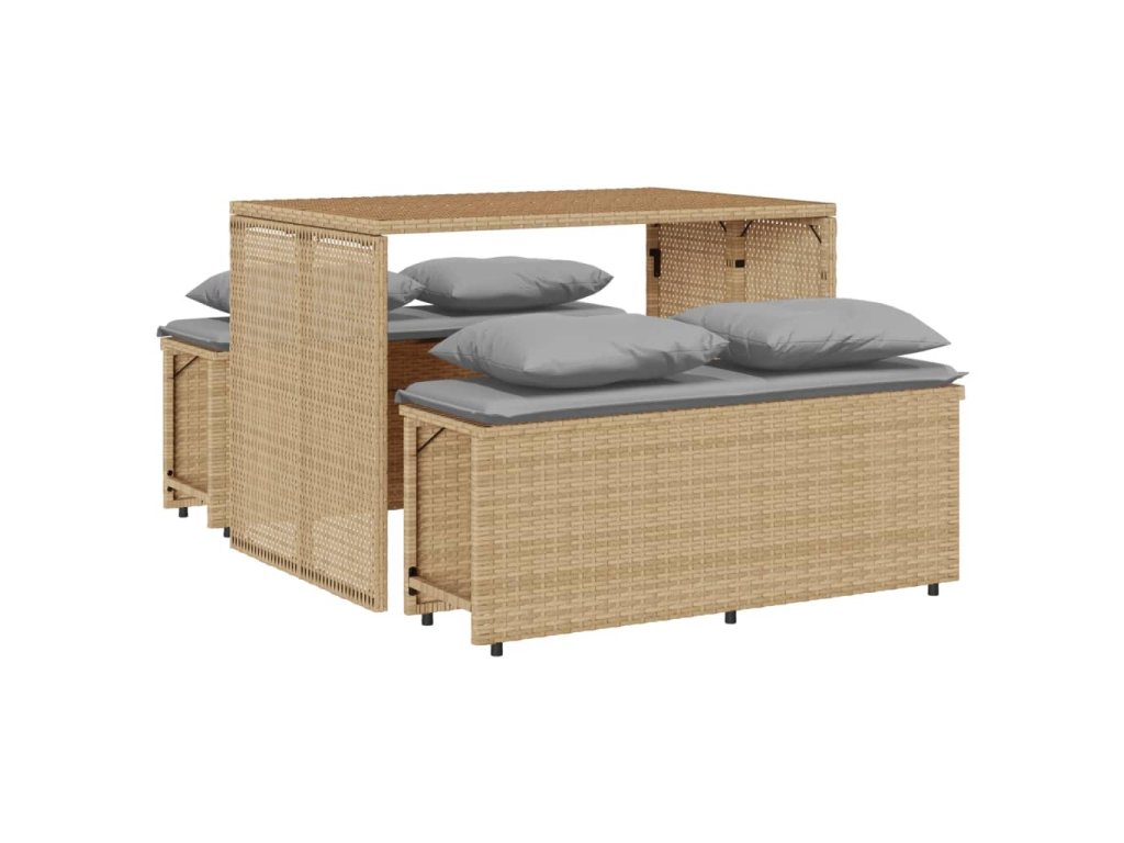 vidaXL 3-dielna záhradná jedálenská súprava a vankúše béžová polyratan
