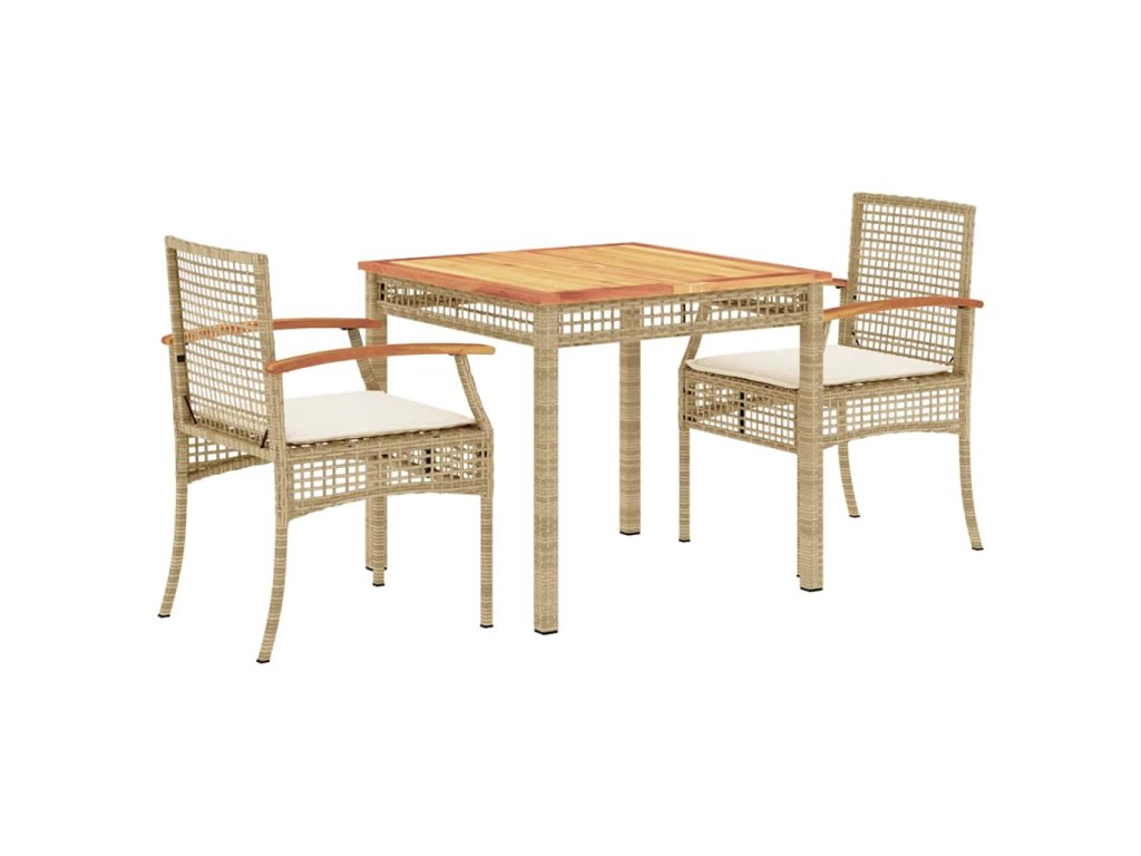 vidaXL 3-dielna záhradná jedálenská súprava a vankúše béžová polyratan