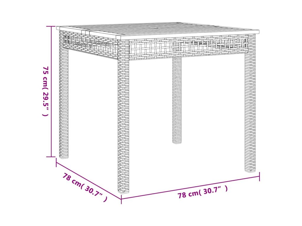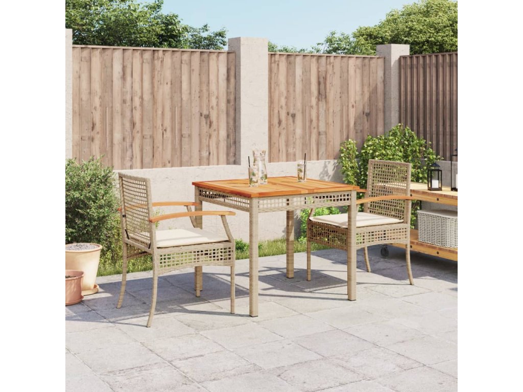 - Stabilná a ľahko čistiteľná stolová doska: Tento záhradný stôl má dosku z akáciového dreva, ktorá je stabilná, odolná a ľahko sa čistí vlhkou handričkou.