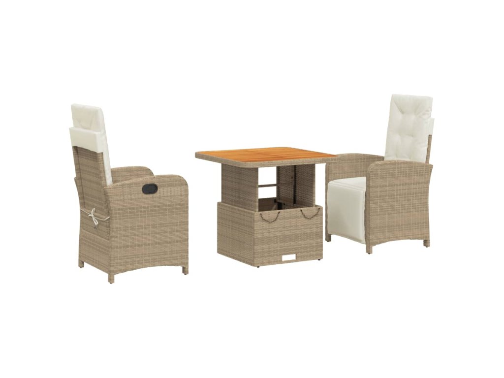 vidaXL 3-dielna záhradná jedálenská súprava a vankúše béžová polyratan