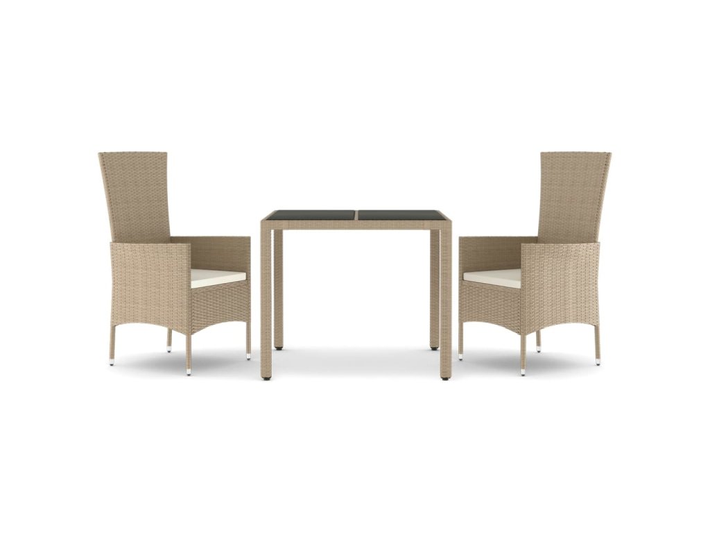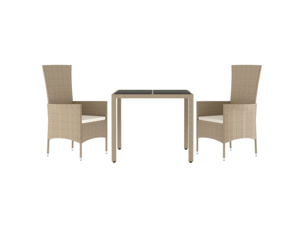 vidaXL 3-dielna záhradná jedálenská súprava a vankúše béžová polyratan