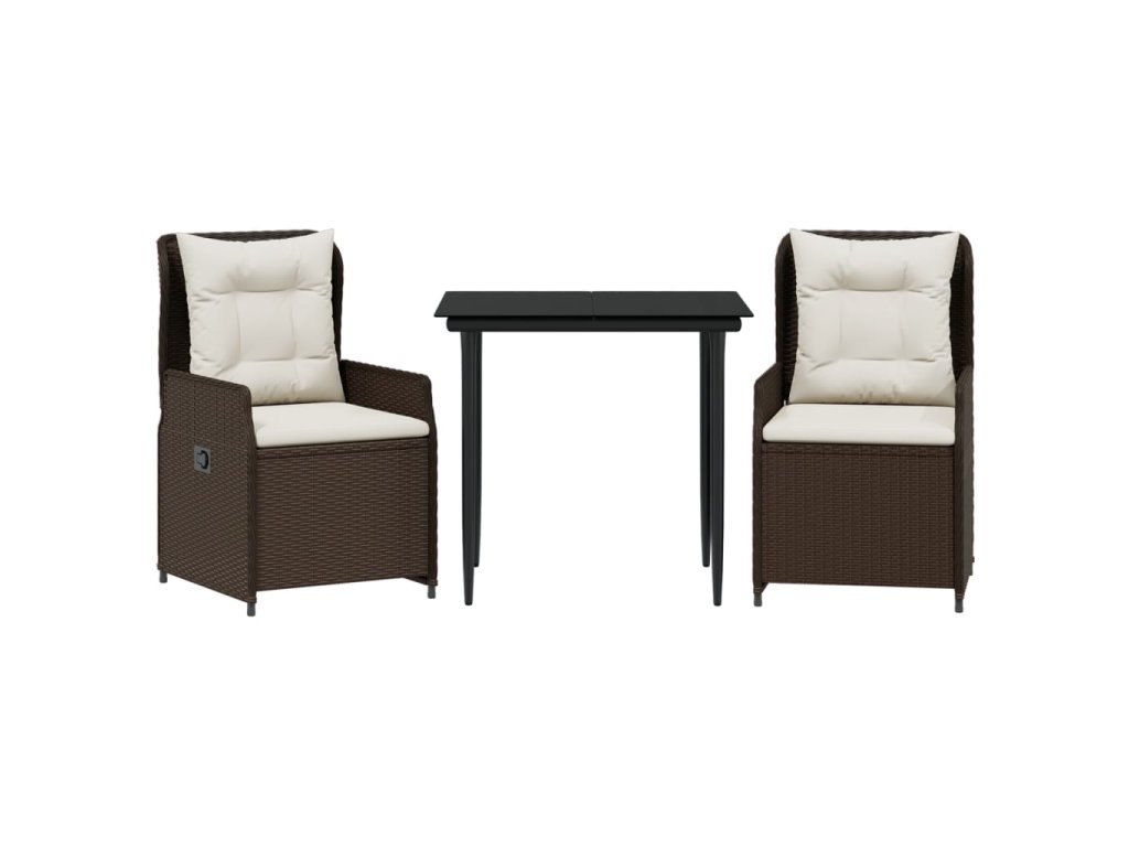 vidaXL 3-dielna záhradná jedálenská súprava a vankúše hnedá polyratan