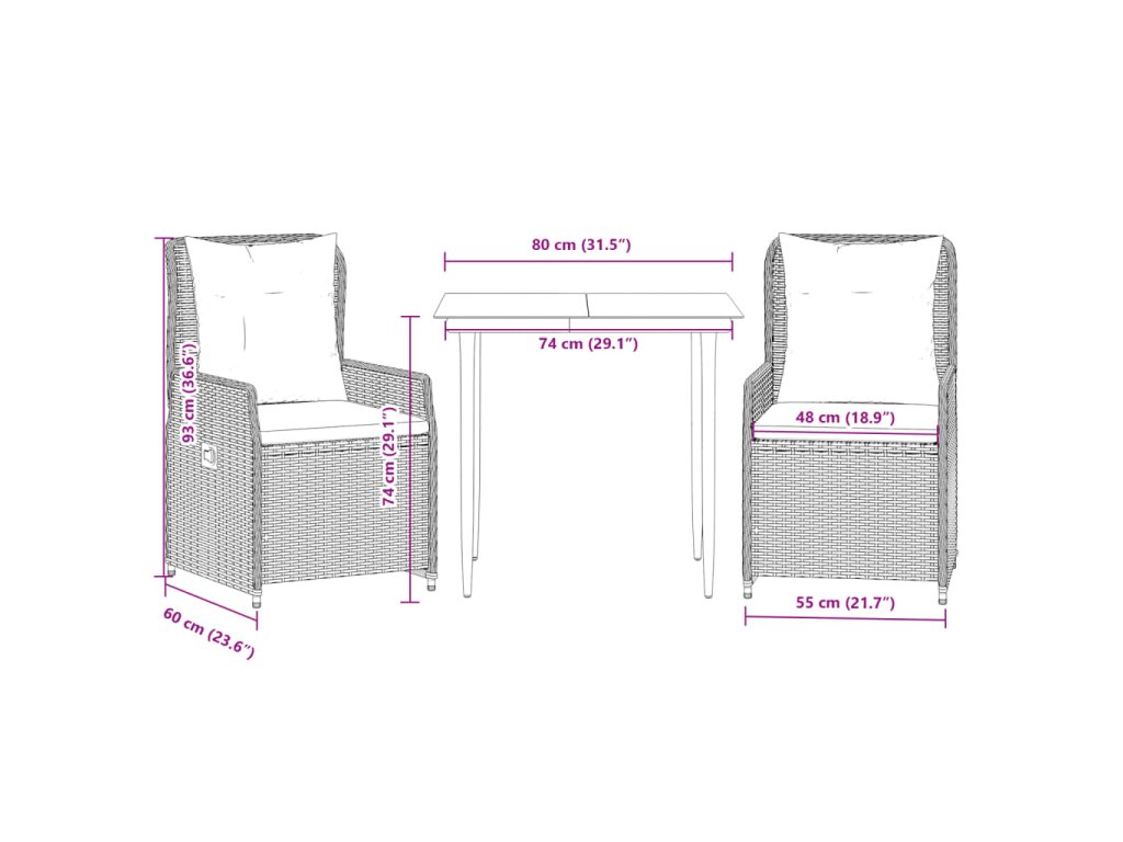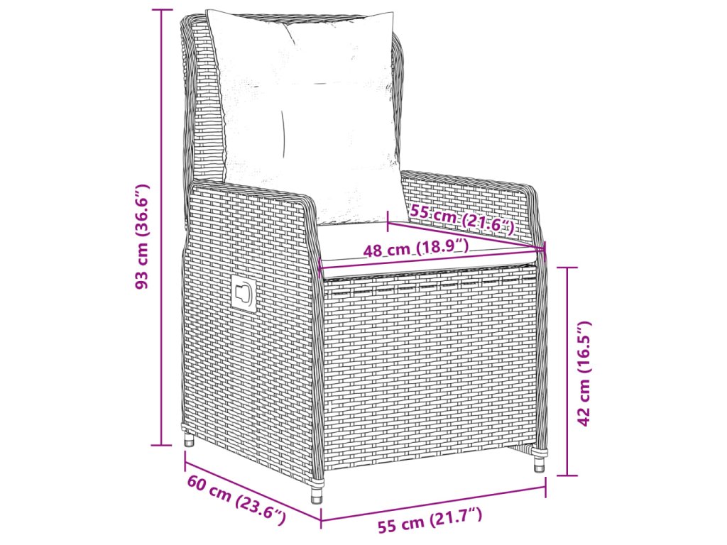 - Rozmery v polohe na sedenie: 55 x 60 x 93 cm (Š x H x V)