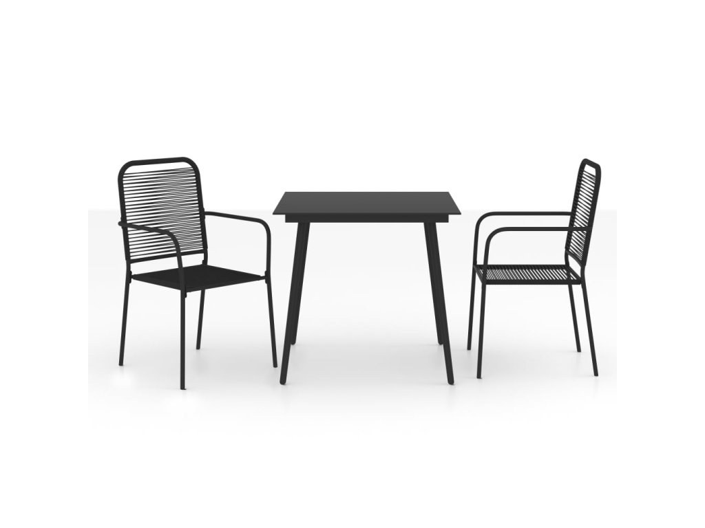 vidaXL 3-dielna záhradná jedálenská súprava čierna bavlnené lano a oceľ