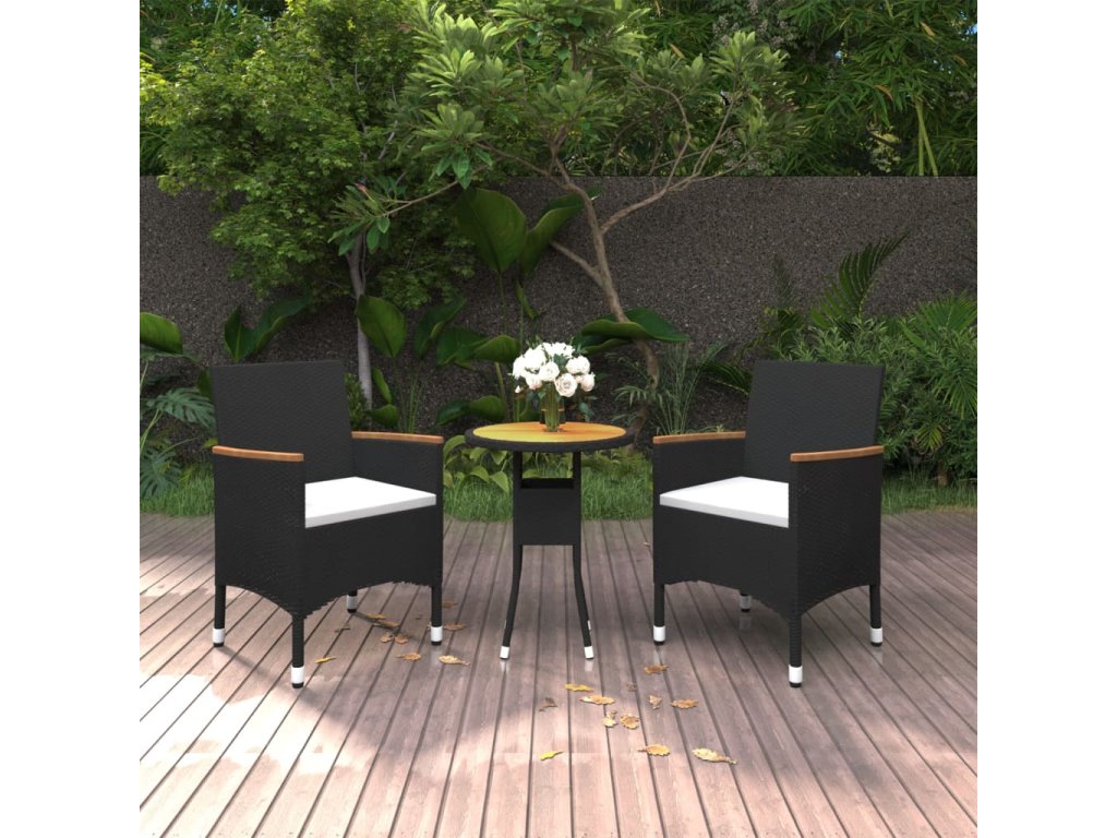 vidaXL 3-dielna záhradná jedálenská súprava čierna polyratan
