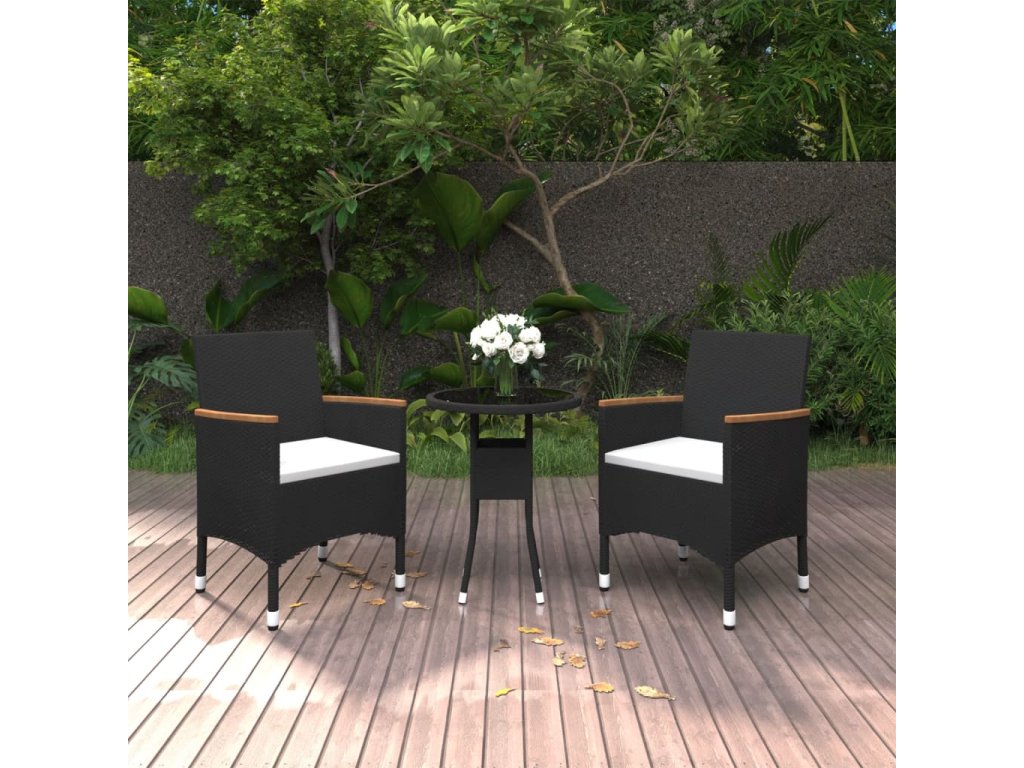 vidaXL 3-dielna záhradná jedálenská súprava čierna polyratan
