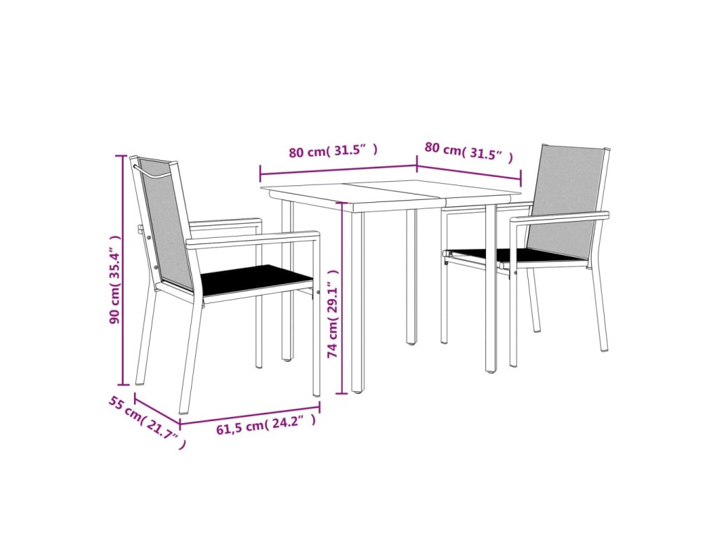 vidaXL 3-dielna záhradná jedálenská súprava čierna textilén a oceľ