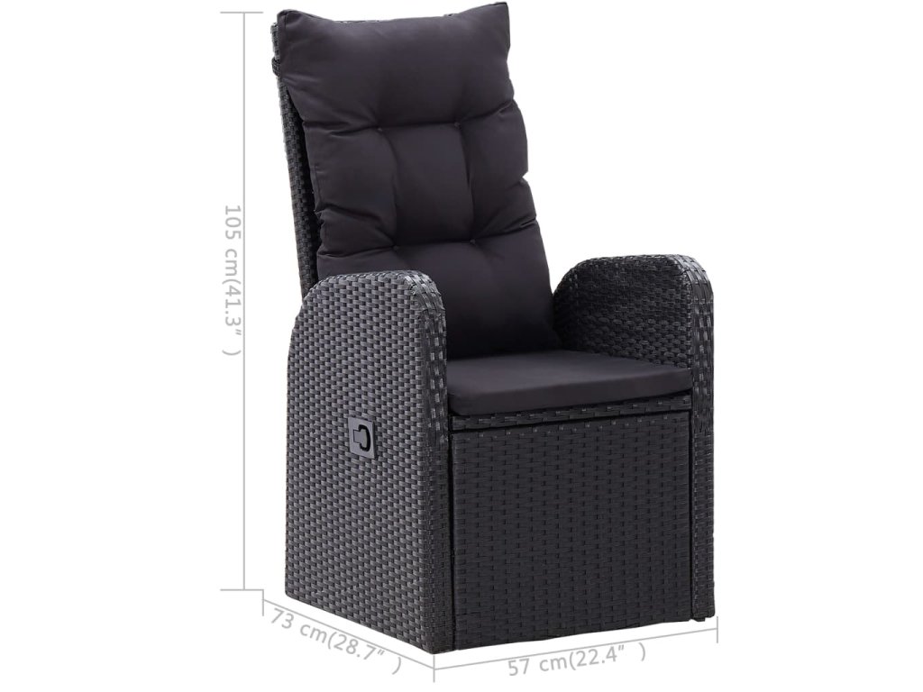 Jedálenský stôl je vyrobený z akáciového masívu s olejovým náterom, vďaka čomu je stabilný, trvácny a ľahko sa udržiava. Jedálenské stoličky majú oceľový rám s práškovou povrchovou úpravou, ktorý je pokrytý PE ratanom, vďaka čomu sú pevné a dajú sa ľahko očistiť. Stačí zatlačiť tlačidlo v bočnej časti a operadlo s podnožkou sa sklopí, takže môžete plne relaxovať. Stoličky majú ľahkú konštrukciu, a tak sa dajú jednoducho premiestňovať. Dodávajú sa spolu s veľmi pohodlnými, nahusto vyčalúnenými podložkami na sedadlo, ktoré prinášajú optimálny komfort. Polyesterové poťahy si nevyžadujú náročnú údržbu a stačí ich zvliecť a oprať.
