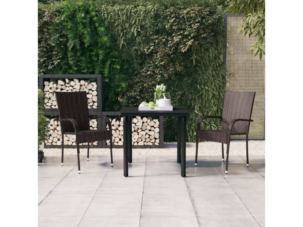 Stôl a stoličky sú pevné a stabilné vďaka oceľovým rámom s práškovým nástrekom, čím sú vhodné pre každodenné vonkajšie používanie. Vďaka vodeodolnému PE ratanu sa stoličky ľahko čistia a sú vhodné na každodenné používanie. Hladká sklenená doska stola sa jednoducho čistí vlhkou handričkou a je ideálna na umiestnenie jedál, nápojov a dekoratívnych predmetov.