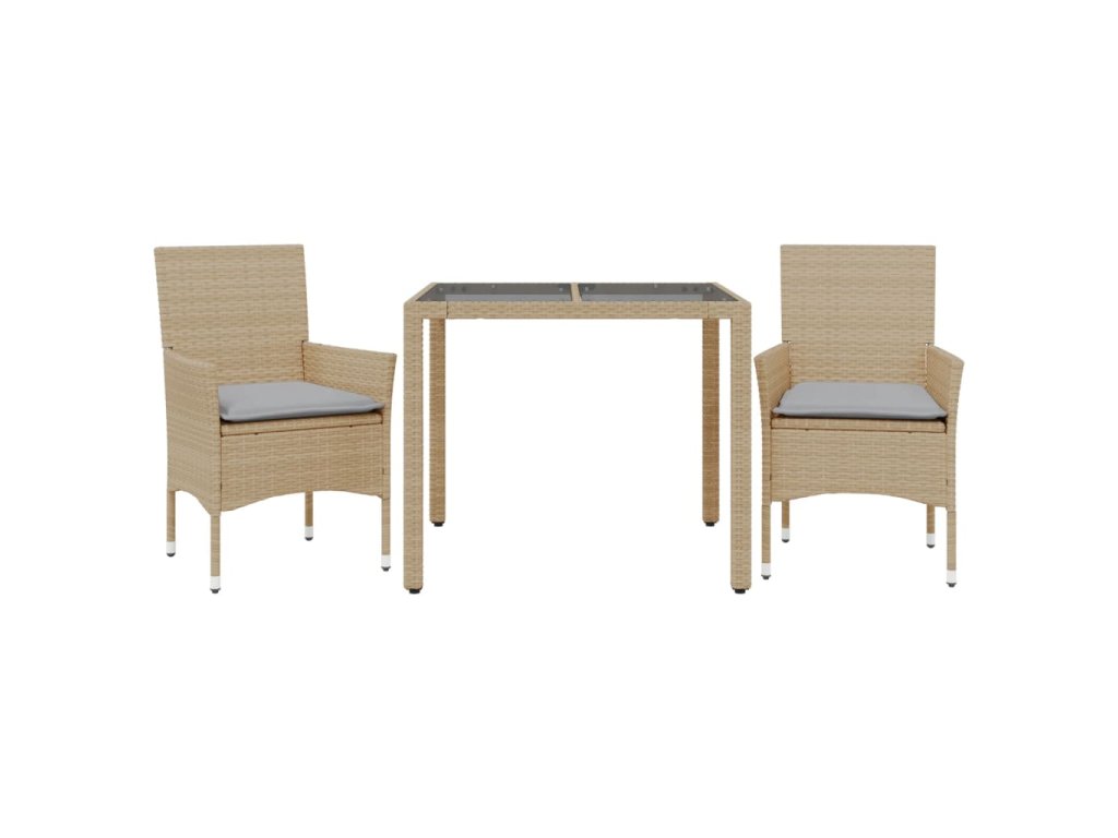 vidaXL 3-dielna záhradná jedálenská súprava+podložky, béžová polyratan