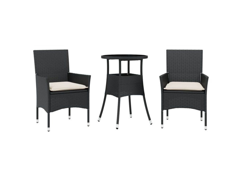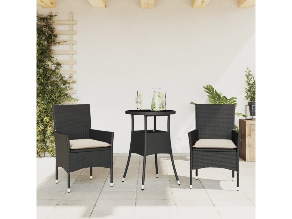 vidaXL 3-dielna záhradná jedálenská súprava+podložky, čierna polyratan