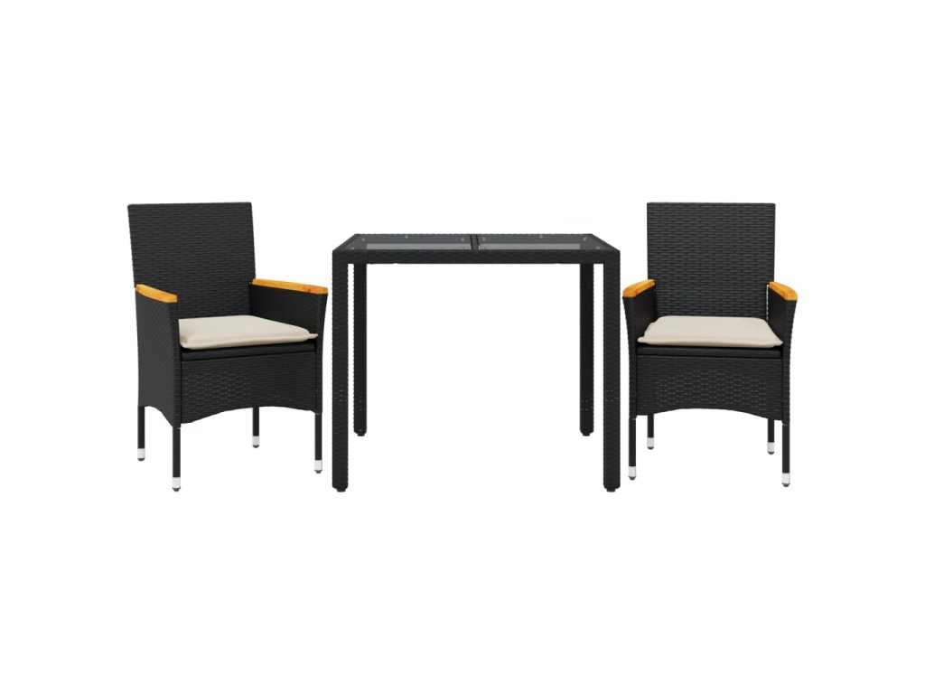 vidaXL 3-dielna záhradná jedálenská súprava+podložky, čierna polyratan