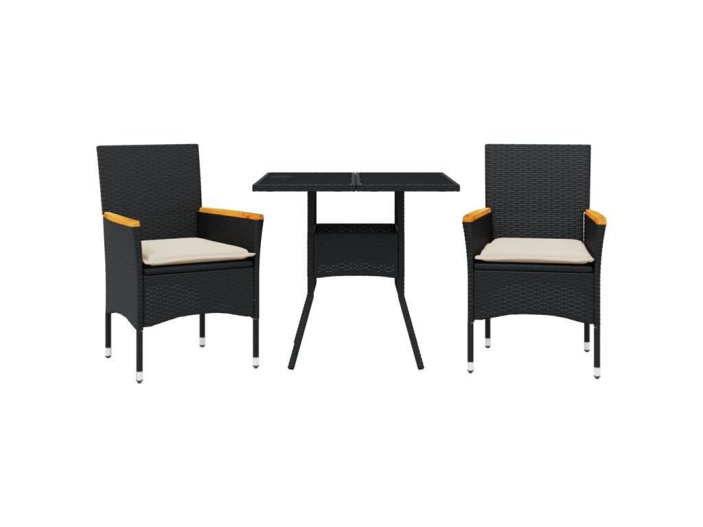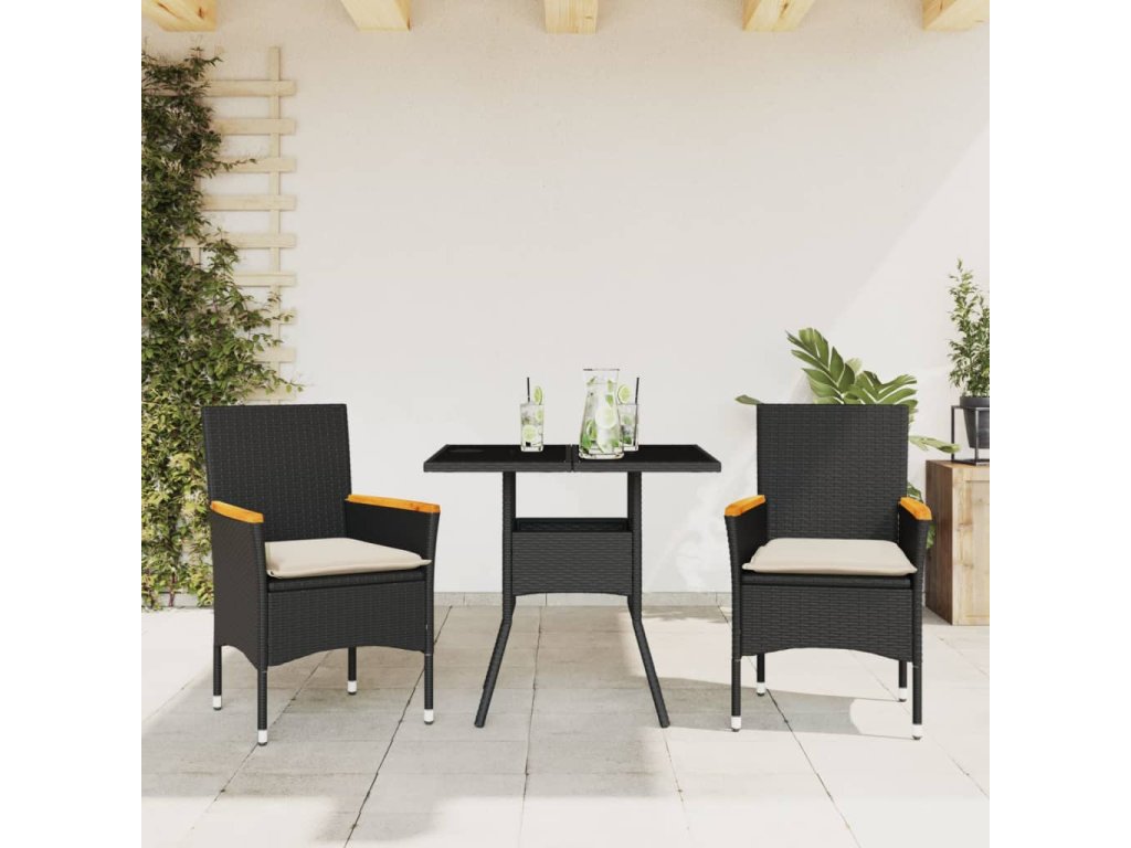 vidaXL 3-dielna záhradná jedálenská súprava+podložky, čierna polyratan