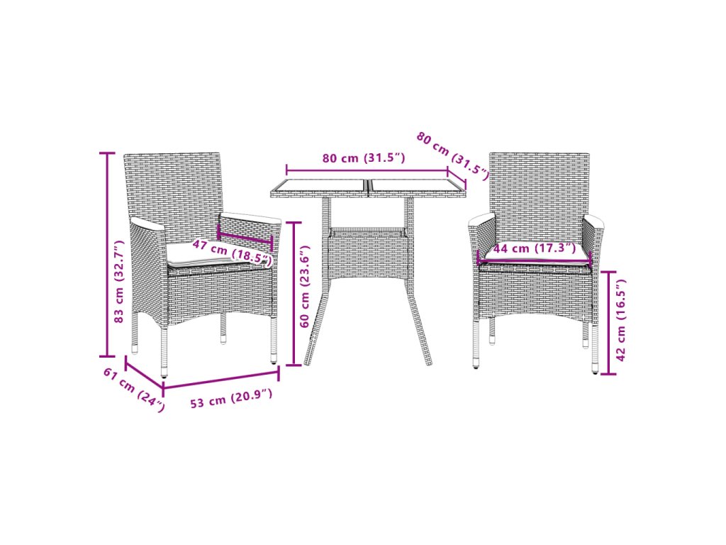 - Rozmery: 80 x 80 x 75 cm (Š x H x V)