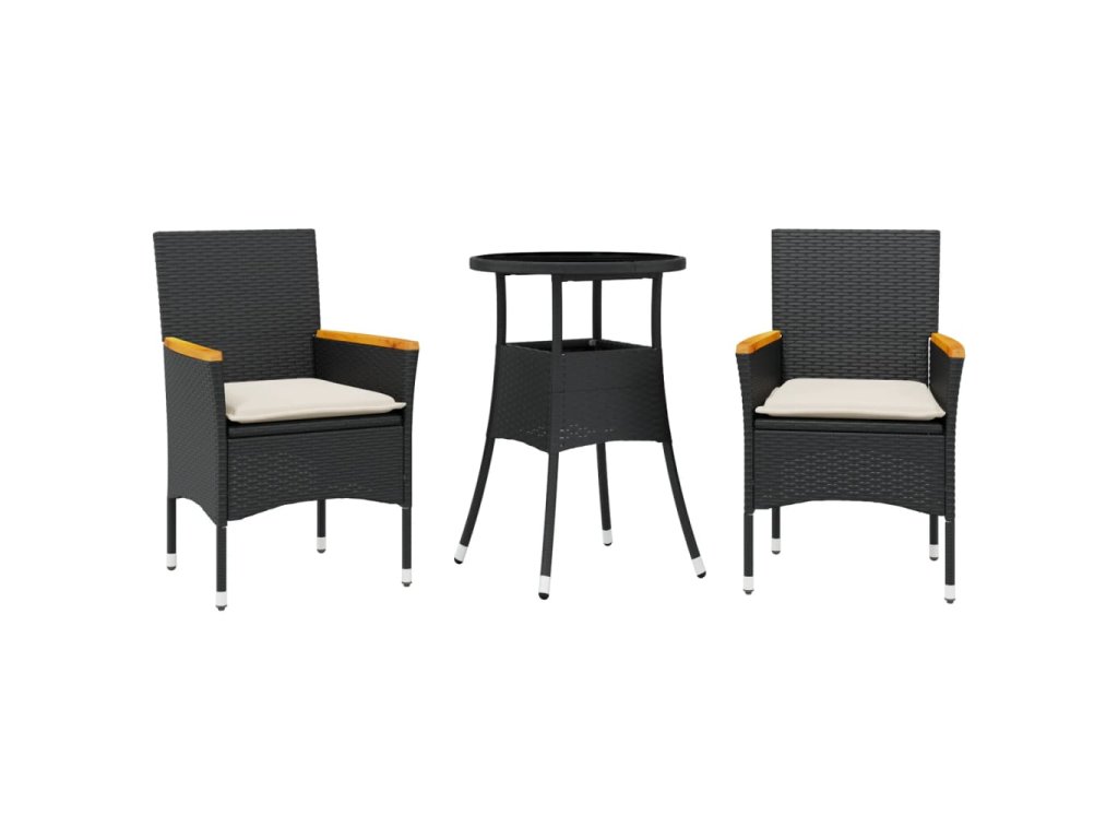 vidaXL 3-dielna záhradná jedálenská súprava+podložky, čierna polyratan