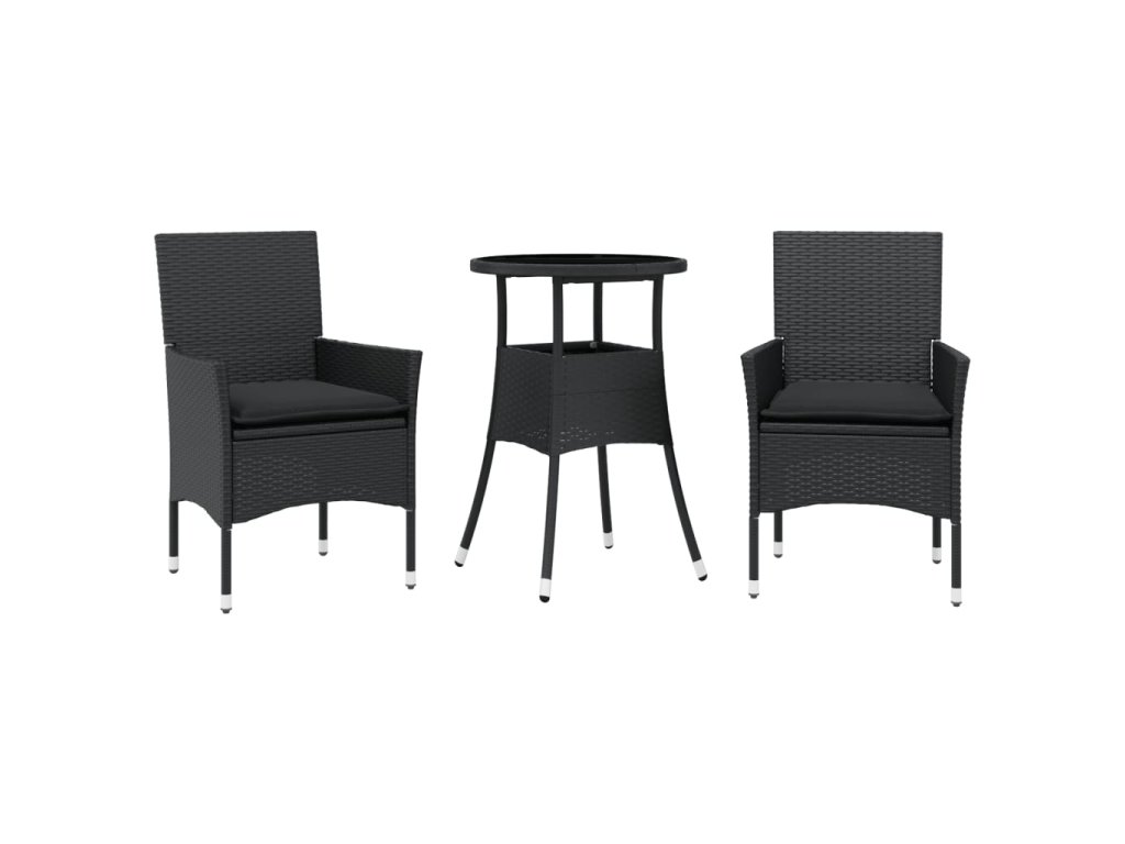 vidaXL 3-dielna záhradná jedálenská súprava+podložky, čierna polyratan